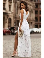 Dámské šaty SOKY SOKA na ramínka s šifonovou sukní dlouhé smetanově bílé - Bílá / XL - SOKY&SOKA