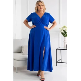 Dámské společenské šaty SOKY SOKA s perličkami a krajkou dlouhé tmavě modré - Tmavě modrá / XL - SOKY&SOKA