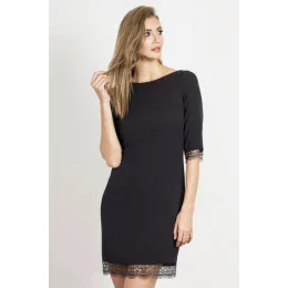 Spodní lem šatů a lem 3/4 rukávů z krajky.