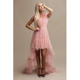 Společenské dámské šaty na ramínka krajkové s kolovou sukní růžové - Růžová / L - Sherri
