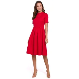 Dámské společenské šaty FOLD se sklady a páskem středně dlouhé červené - Červená - Numoco
