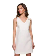 95 % polyester 5 % elastan Univerzální šaty jsou to, co potřebujeme, pro každou příležitost a každý typ postavy. Naše krásné áčkové šaty jsou pohodlné a stylové. Dokonale skryje těhotenské bříško nebo jakékoli nedokonalosti postavy. Mašle na rameni dodává šik vzhled a barvy jsou opravdu lichotivé. PODROBNOSTI O PRODUKTU: tkaná látka šaty bez rukávů áčkový střih výstřih ve tvaru V vpředu i vzadu ozdobná mašle na rameni délka nad kolena modelující záševky na zádech skrytý boční zip bez podšívky naše modelka měří 175 cm a nosí velikost S