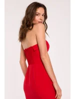 Dámské společenské šaty FOLD se sklady a páskem středně dlouhé červené - Červená - Numoco