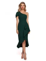 Dámské šaty K146 na jedno rameno lahvově zelené - Makover