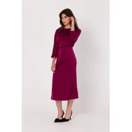 98 % polyester 2 % elastan DETAILY VÝROBKU: tkaný satén tříčtvrteční netopýří rukávy midi délka bateau výstřih tenký vázaný v pase skrytý zip na zádech bez podšívky Naše modelka je 168 cm vysoká a nosí velikost S Navrženo a vyrobeno v Polsku