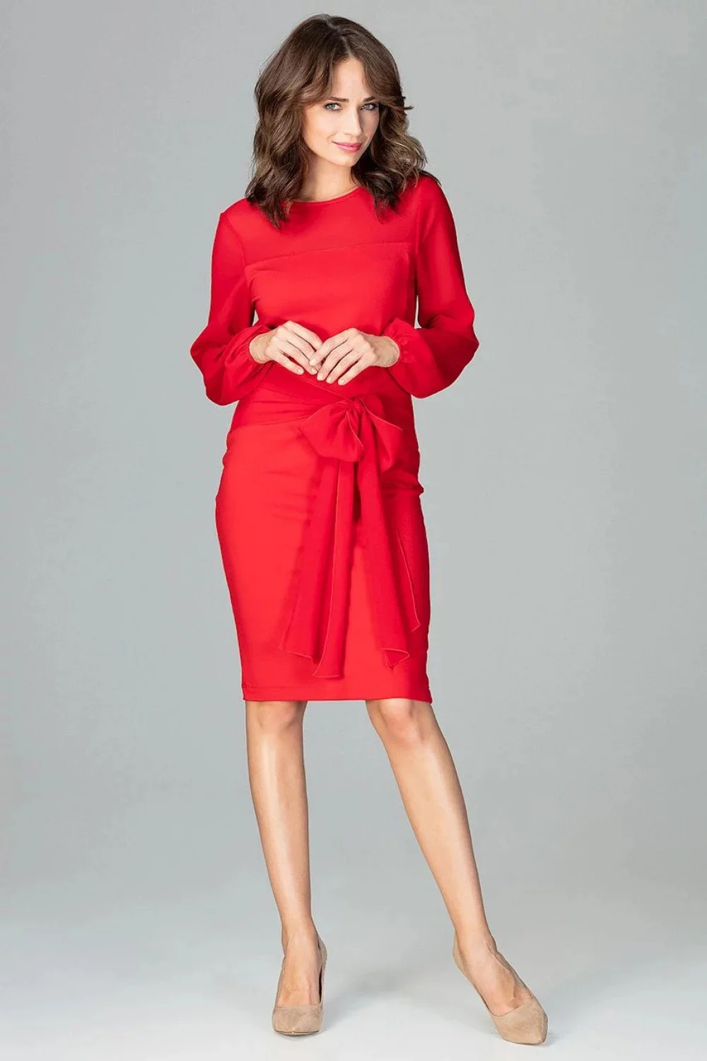 Dámské společenské šaty EMAMODA s dlouhými rukávy červeno-černé - Červená / L - EMAMODA