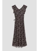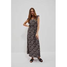 Extrémně ženské šaty, s otevřenými rameny, širokými ramínky. Oranžová barva. Hladké, bez vzorů. Horní část šatů je ve formě stahovací šňůrky. Dokonale se přizpůsobí postavě a zdůrazní ženské tvary. Spodní díl šatů je volný, volný a rozšířený. Délka nad kolena. Vyrobeno z příjemné na dotek a vzdušné viskózy. Ideální na pláž a každodenní styling. Ideální na léto, to musíte mít!