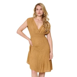 Elegantní letní šaty LingaDore jsou ideální volbou na pláž, k bazénu nebo jako lehké šaty na letní dovolenou. Díky vzdušnému střihu a příjemnému materiálu jsou velmi pohodlné na nošení i během horkých dní. Šaty mají volnější střih, který krásně splývá a poskytuje maximální komfort. Šaty mají délku ke kolenům, mají širší nabíraná ramínka. Výstřih je překřížený do „V“. Záda mají šaty holá, šňůrkou vzadu si regulujete šířku odhalených zad. Pod prsy jsou jemné „žabičkové“ gumičky pro pohodlné nošení. Design doplňuje jemné provedení a lehký materiál, který je prodyšný a příjemný na dotek. Skvěle se hodí přes plavky, ale i jako stylový letní outfit na procházku po pláži nebo do města.