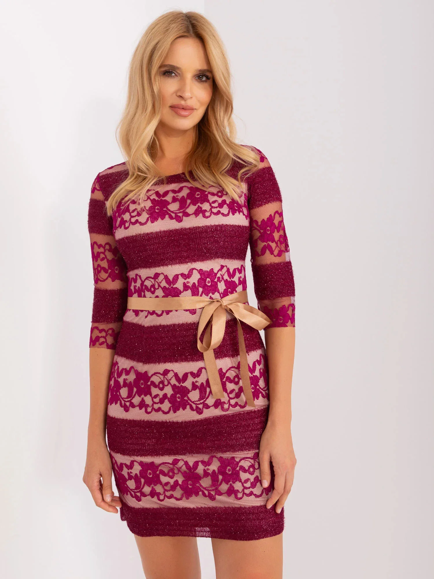 Dámské šaty LK SK 507231.71P Vínová s béžovou - Lakerta