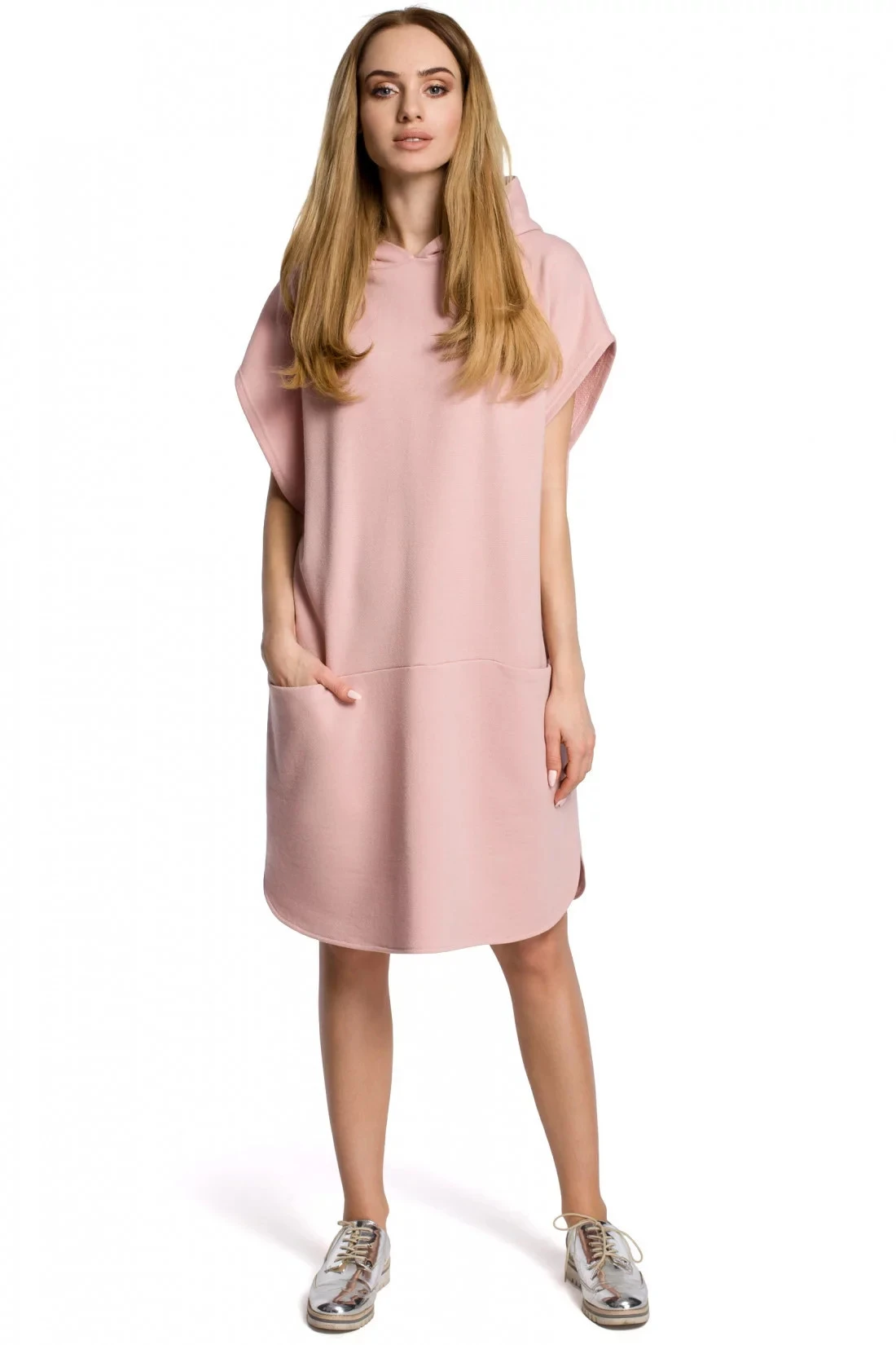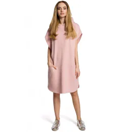 Teplákové šaty M368 mají krátký rukáv a kapuci. Na boku mají kapsy. Ideální na volný čas. Zkombinujte je s teniskami.