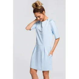 Dámské společenské šaty s límečkem, stužkou a krátkým rukávem dlouhé - Růžová / M - Lemoniade