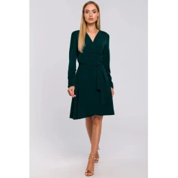 Dlouhé nabírané rukávy, halený vršek a rozšířená sukně - tyto zavinovací šaty střižené ze splývavé látky budou v závislosti na doplňcích dokonalým společenským i každodenním kouskem. PODROBNOSTI O PRODUKTU: zavinovací šaty z tkané látky zavazované na boku skryté zapínání na knoflíky výstřih do V volný vršek dlouhé rukávy nabírané pod lokty rozšířená sukně v délce mini bez podšívky naše modelka je vysoká 171 cm a nosí velikost S
