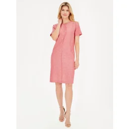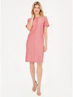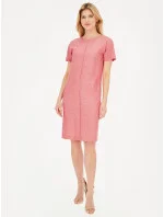 Dámské společenské šaty s límečkem, stužkou a krátkým rukávem dlouhé - Růžová / M - Lemoniade