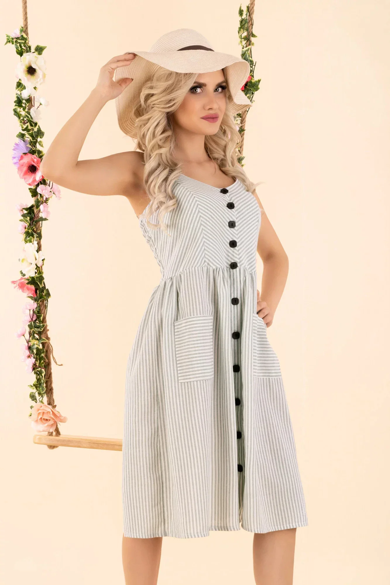 Dámské šaty netopýří střih s kapsami a zavazovací tkanicí květinové šedé - Šedá / S - Numoco