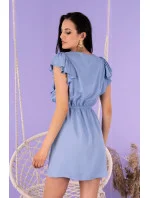 Letní šaty zdobené na předním díle ažurou a volánem přecházející z předního dílu přes ramena na zadní díl.