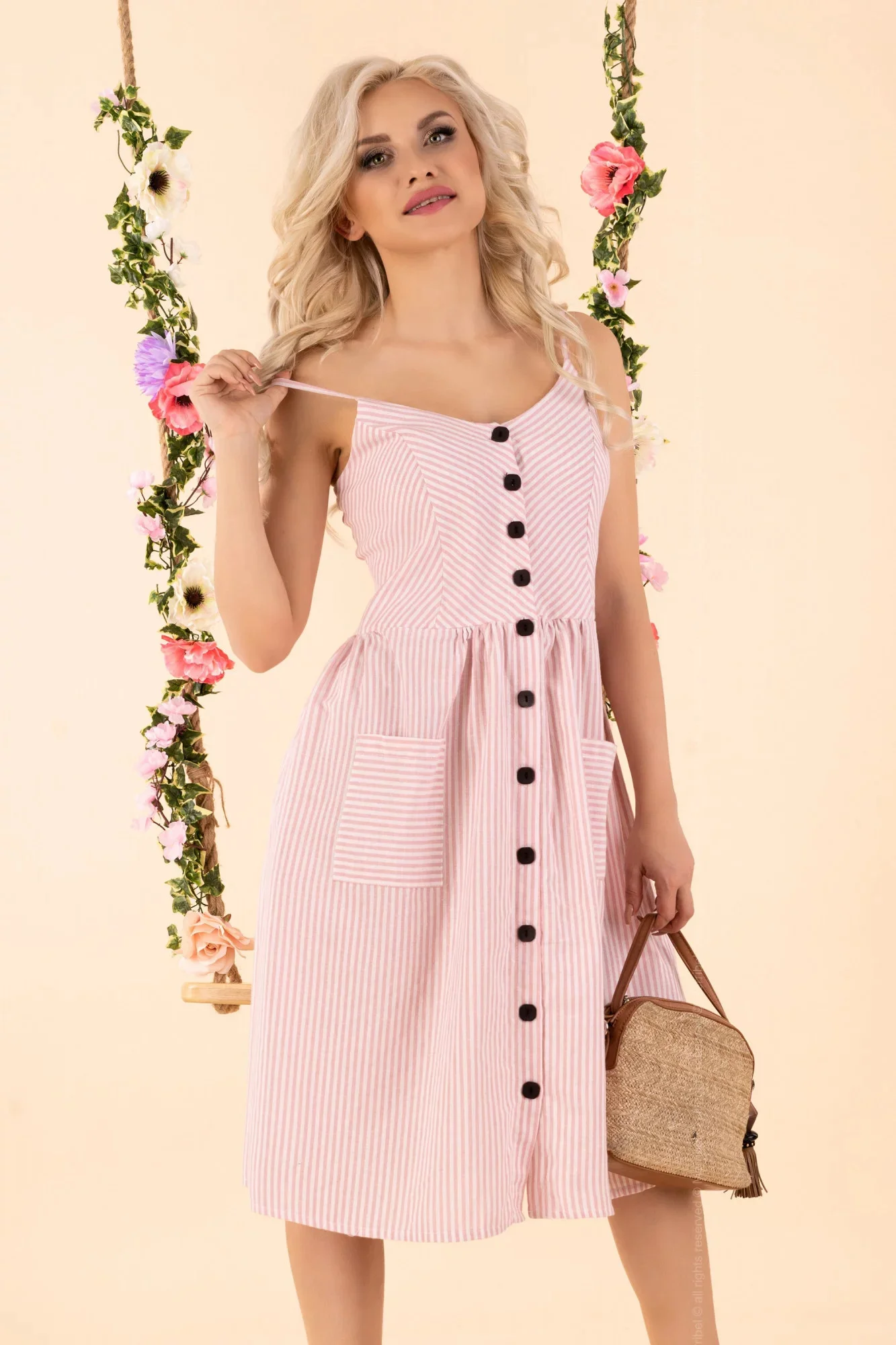 Dámské letní šaty proužkované na ramínka,propínací na knoflíčky.