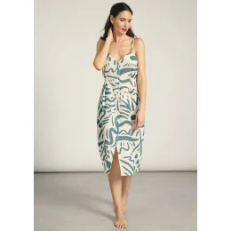 Dámské plážové šaty značky Muydemi. Šaty jsou vyrobeny ze 100% viskózy, ideální pro horké letní dny. Šaty jsou volné, celopropínací a délkou pod kolena. Šaty mají tenká ramínka a výstřih do "V".