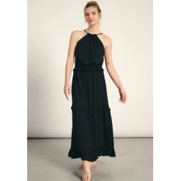 Dámské plážové šaty značky Muydemi. Šaty jsou vyrobeny ze 100% viskózy, ideální pro horké letní dny. Šaty jsou volné, jednoduchého střihu, s délkou po kotníky. Šaty jsou vzadu na zavazování.
