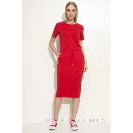 Dámské šaty na denní nošení se zavazováním v pase červené - Červená - Makadamia