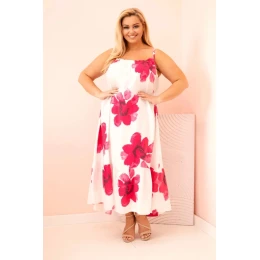 Dámské šaty na ramínka s volánem a květinovým potiskem růžová