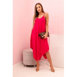 Dámské šaty na ramínkách rozšířené s asymetrickým lemem fuchsie