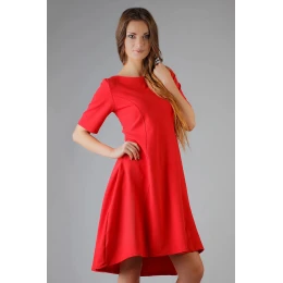 Dámské společenské šaty FOLD se sklady a páskem středně dlouhé červené - Červená - Numoco