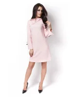 Dámské společenské šaty s límečkem, stužkou a krátkým rukávem dlouhé - Růžová / M - Lemoniade