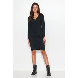Dámská pletená šaty s dlouhým rukávem a asymetrickým výstřihem ZS3039 34956 černé - Kesi