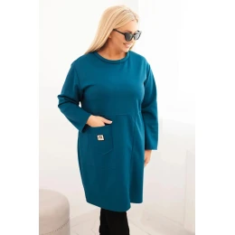2. Dámské šaty Plus Size máslové s kapsou a 3/4 rukávem mořská