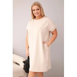 Dámské šaty Plus Size s krátkým rukávem a kapsami béžová