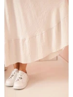 Dámské šaty plus size s krátkým rukávem a volánem z lehké viskózy béžová