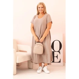 Dámské šaty plus size s krátkým rukávem a volánem z lehké viskózy cappuccino