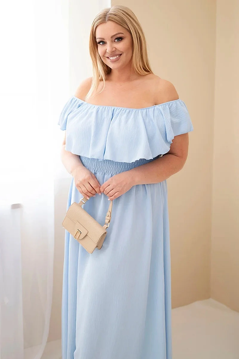 Dámské šaty Plus Size s volánem a elastickým pasem modré