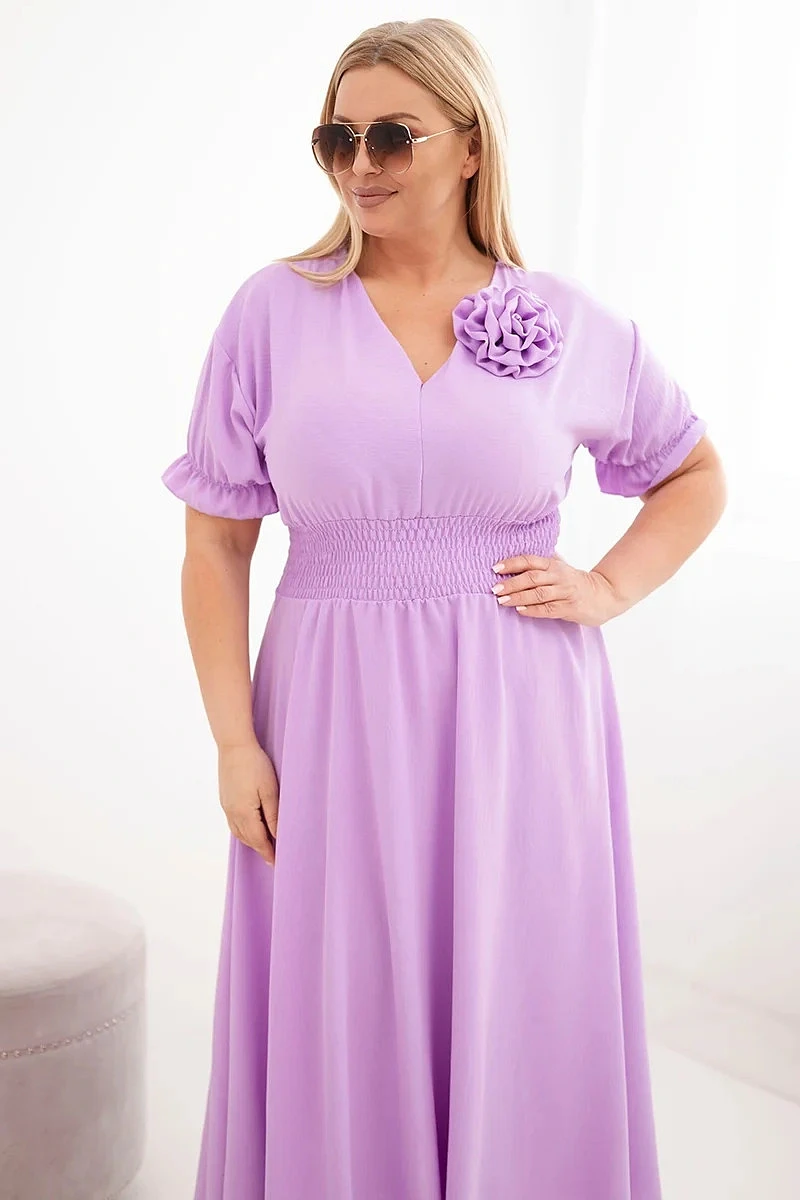 2. Dámské šaty Plus Size s výstřihem do V a řaseným pasem světle fialová