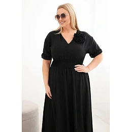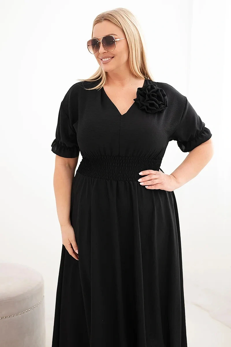 Elegantní a mimořádně pohodlné dámské šaty Plus Size jsou ideální volbou pro ženy, které si cení stylu a pohodlí v každodenních outfitech. Model se vyznačuje klasickým výstřihem do V, který opticky zeštíhluje krk a zdůrazňuje ženský charakter stylizace. Krátké rukávy zakončené jemnou volánkou dodávají lehkost a subtilní kouzlo.