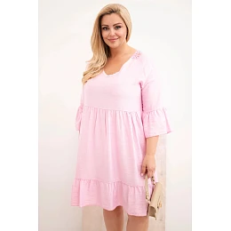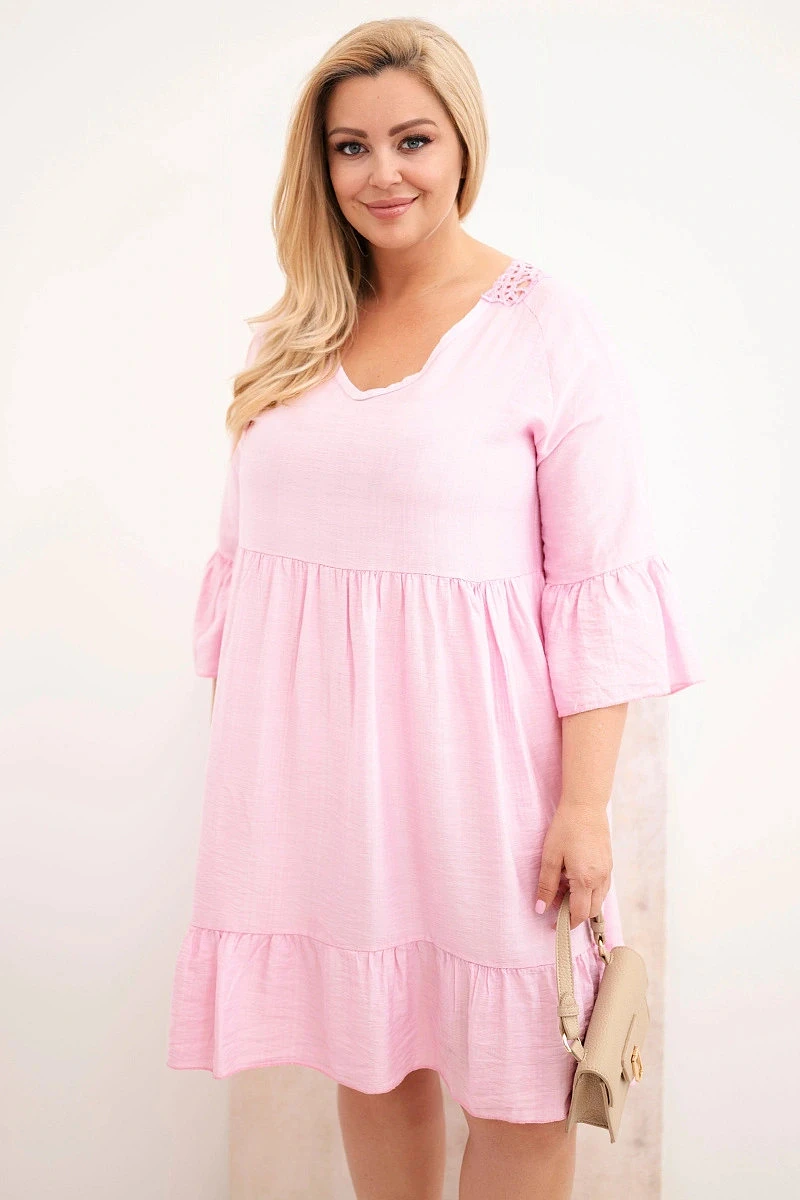 Dámské šaty Plus Size z viskózy s ažurovým zdobením bonbónově růžová