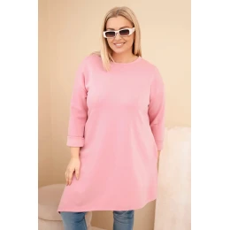 Dámské šaty Plus Size z viskózy s volným střihem a dlouhým rukávem tmavě pudrově růžový