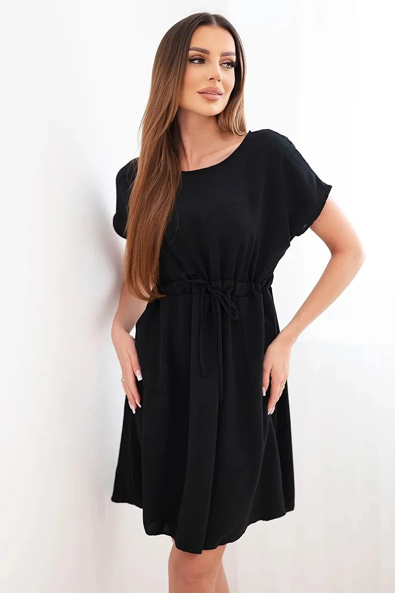 Dámské šaty s krátkým rukávem a vázáním v pase černá