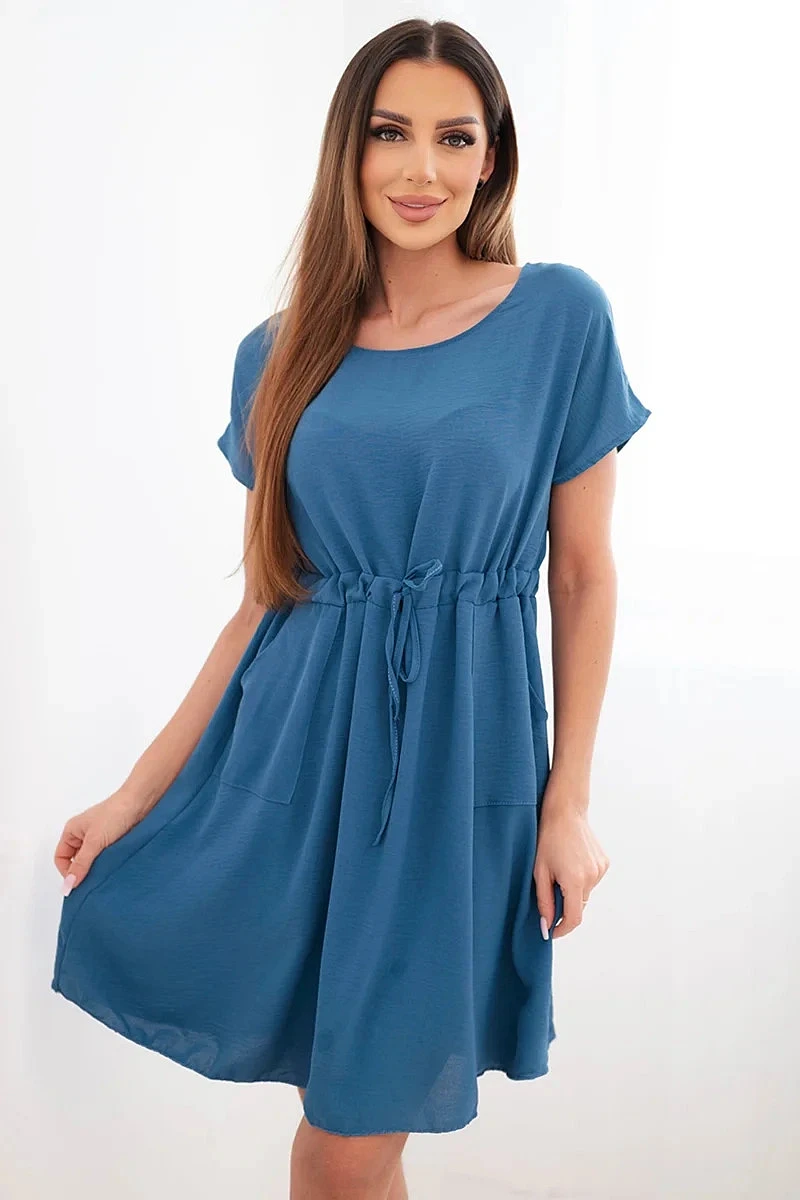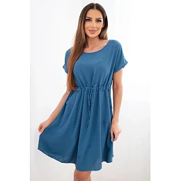 Dámské šaty s krátkým rukávem a vázáním v pase džínové