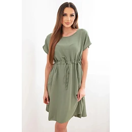 Dámské šaty s krátkým rukávem a vázáním v pase khaki
