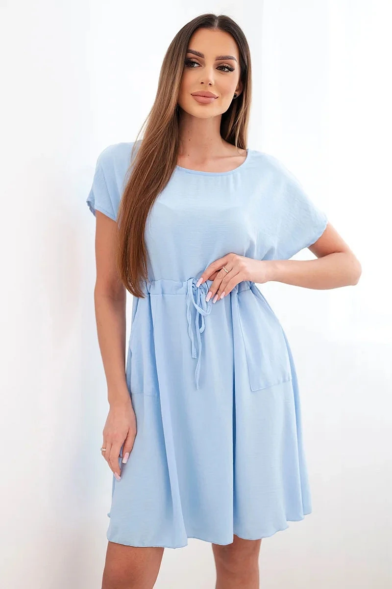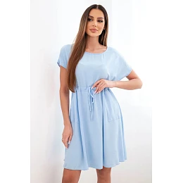 Dámské šaty s krátkým rukávem a vázáním v pase modrá