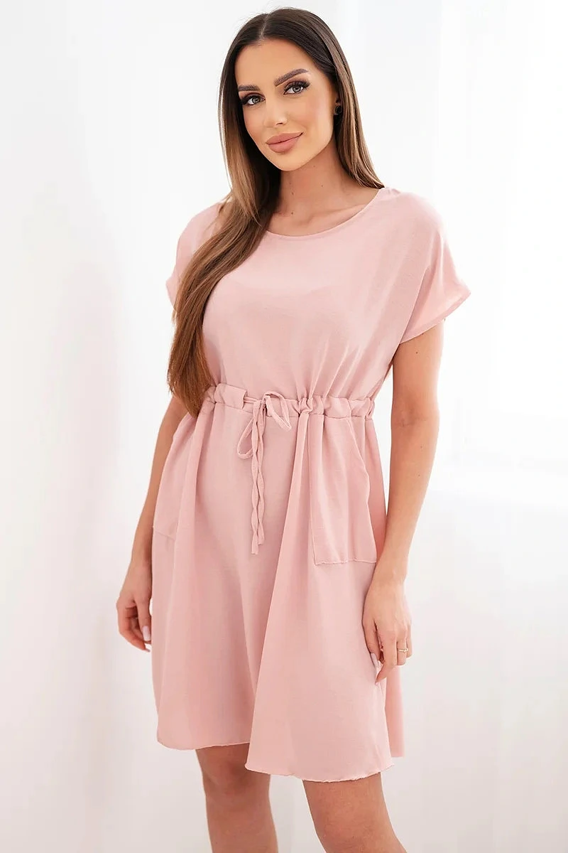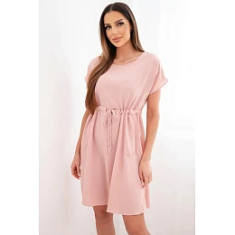Dámské šaty s krátkým rukávem a zavazováním v pase tmavě pudrově růžové
