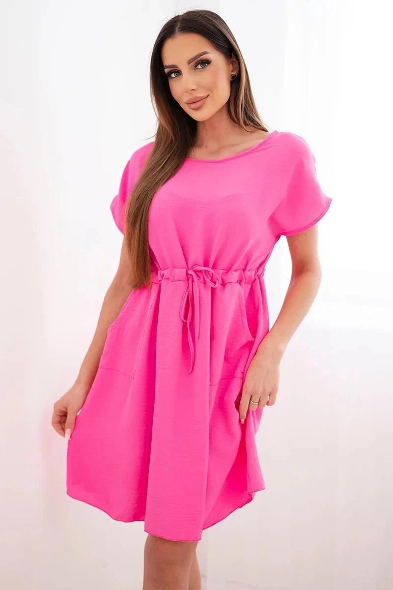 Dámské šaty s krátkým rukávem se zavazováním v pase růžová