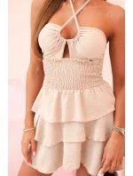 Dámské šaty s odhalenými rameny, volánky a volánky béžový