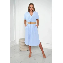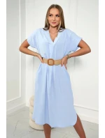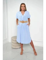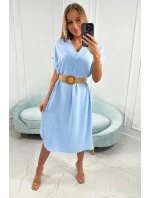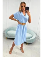 Dámské šaty s ozdobným páskem 24139 sv. modré - Kesi