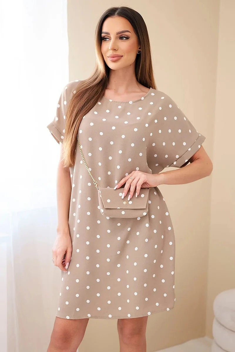 Dámské šaty s puntíky, s krátkým rukávem a s kabelkou fango