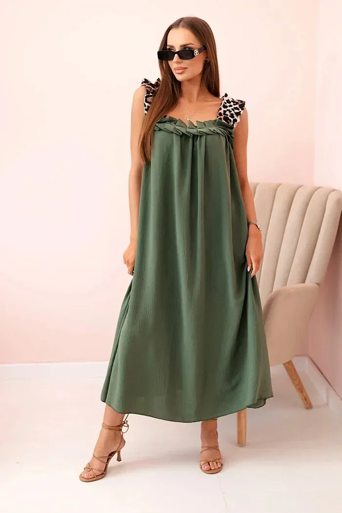 Dámské šaty s ramínky s leopardím potiskem khaki