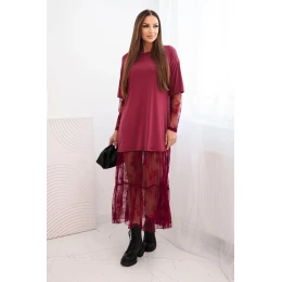 Dámské šaty s tylovým spodním dílem a rukávy bordová