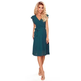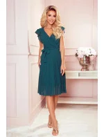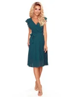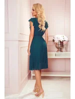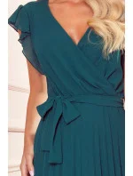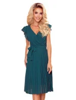 POLINA - Plisované dámské šaty v lahvově zelené barvě s výstřihem a volánky 374-1