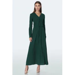 Dámské společenské šaty SOKY SOKA s perličkami a krajkou dlouhé zelené - Zelená - SOKY&SOKA